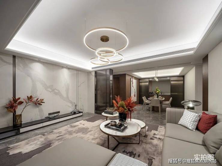 在这套充满高级感的大平层之内,目之所及皆是天然石材地面墙面、大面积岩板背景墙、胡桃木色饰面+定制墙布、华为全屋智能家居系统、甚至连每个房间都预留电动窗帘轨道……这背后是金盛置业一以贯之的高标准高要求,以及对客户需求的深刻洞察。
