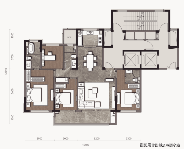 最后,让我们感受一下这款大平层的户型力,户型也是同样能打。