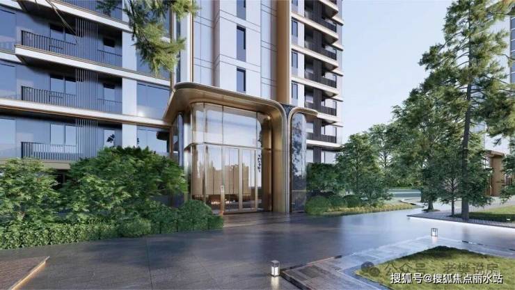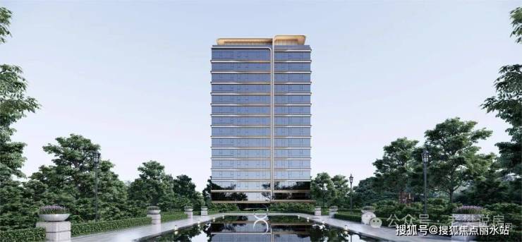 奢定楼顶鎏金峯冠,南立面采用石材、铝板幕墙、系统窗设计,匠筑时代美学峯面;