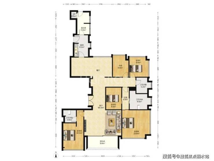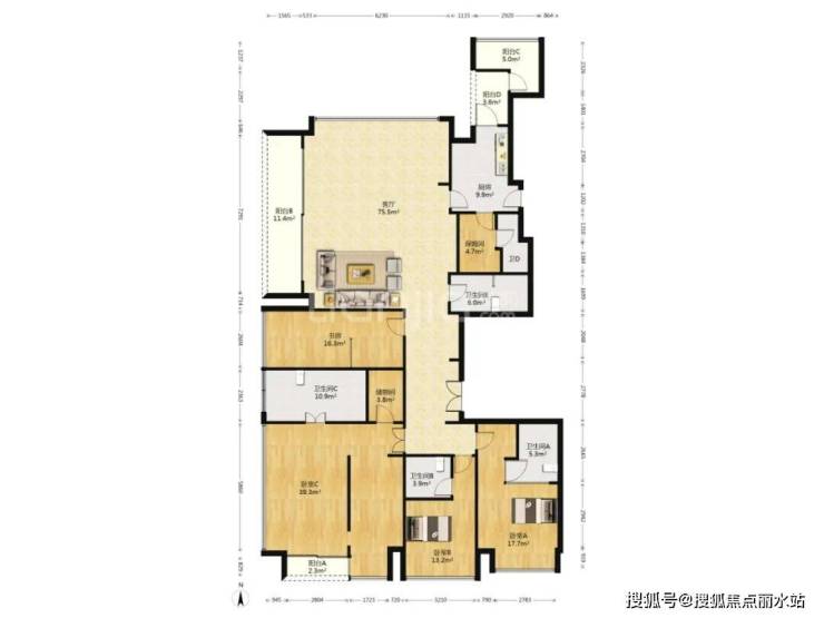 311㎡是C/D栋的01户型,整个小区仅76套,户型为4+1房,三套间+1书房+中西双厨设计,270°大客厅设计,开发商把最好的景观面留在了此户型,客厅朝西可看高尔夫景观,卧室朝南可看海景。