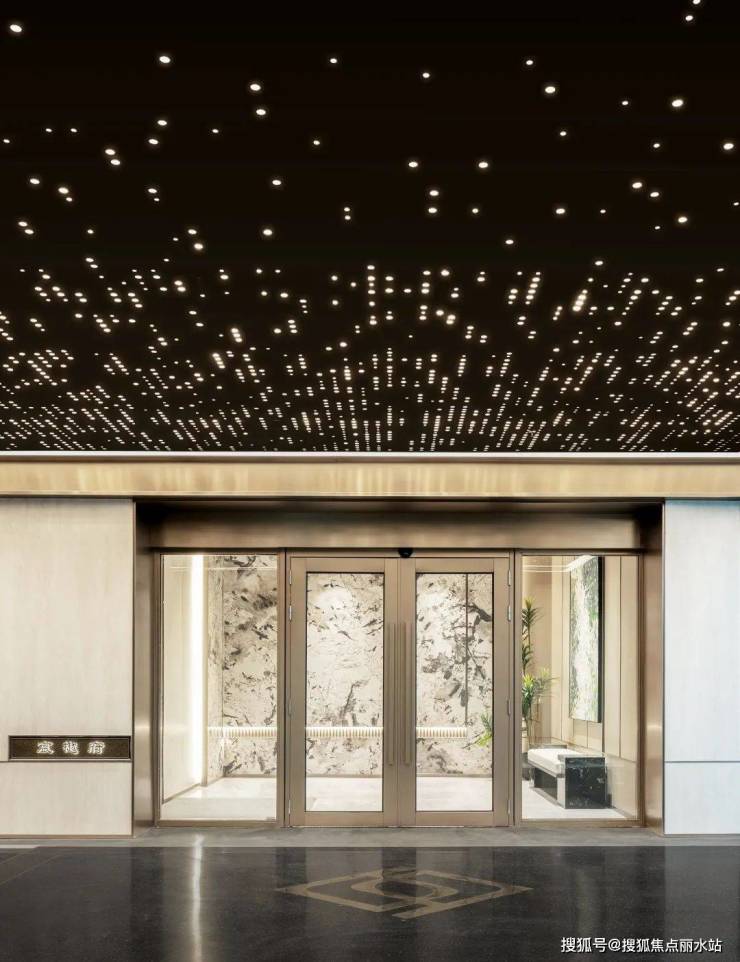 为了营造大堂的奢华感,设计师参考了北京悉昙酒店大堂的设计,打造了星级双入户大堂,搭配无触感归家系统,赋予业主仪式感与尊崇感。
