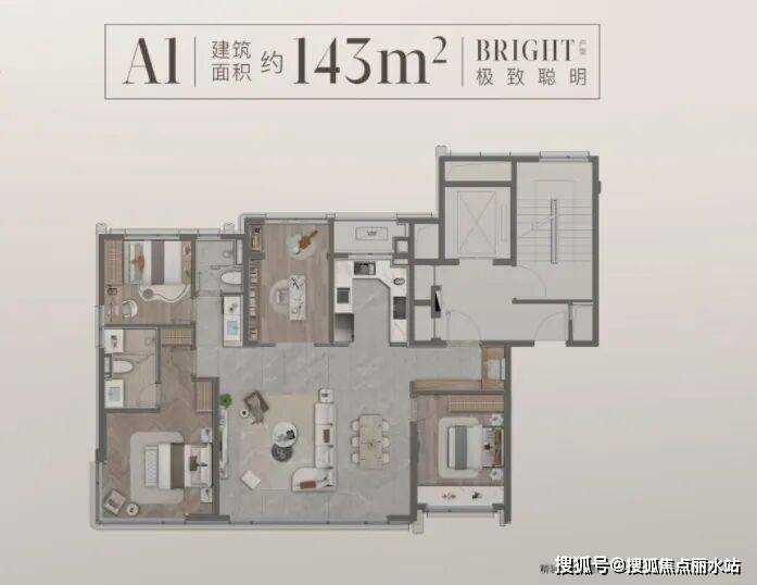 ➤➤143㎡四室户型以大宽厅、四南向两种户型,满足多口家庭全周期不同的成长需求。一位来自科技企业的业主表示:“每个房间尺度都舒服,动线也合理,绿城的设计一直很高级,色彩搭配的也雅致,不是那种硬凹的‘豪华感’。”