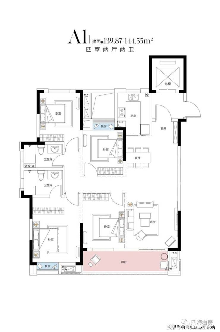 A1 建面约139.87-144.55㎡四室两厅两卫
