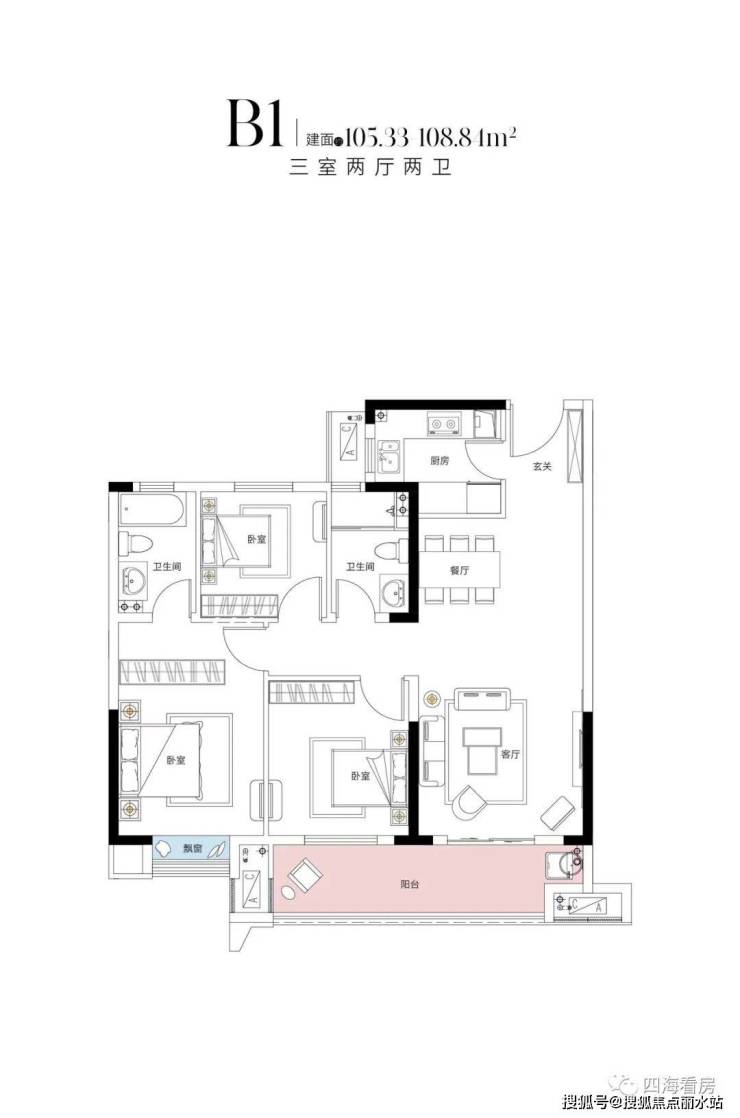 B1 建面约105.33-108.84㎡三室两厅两卫