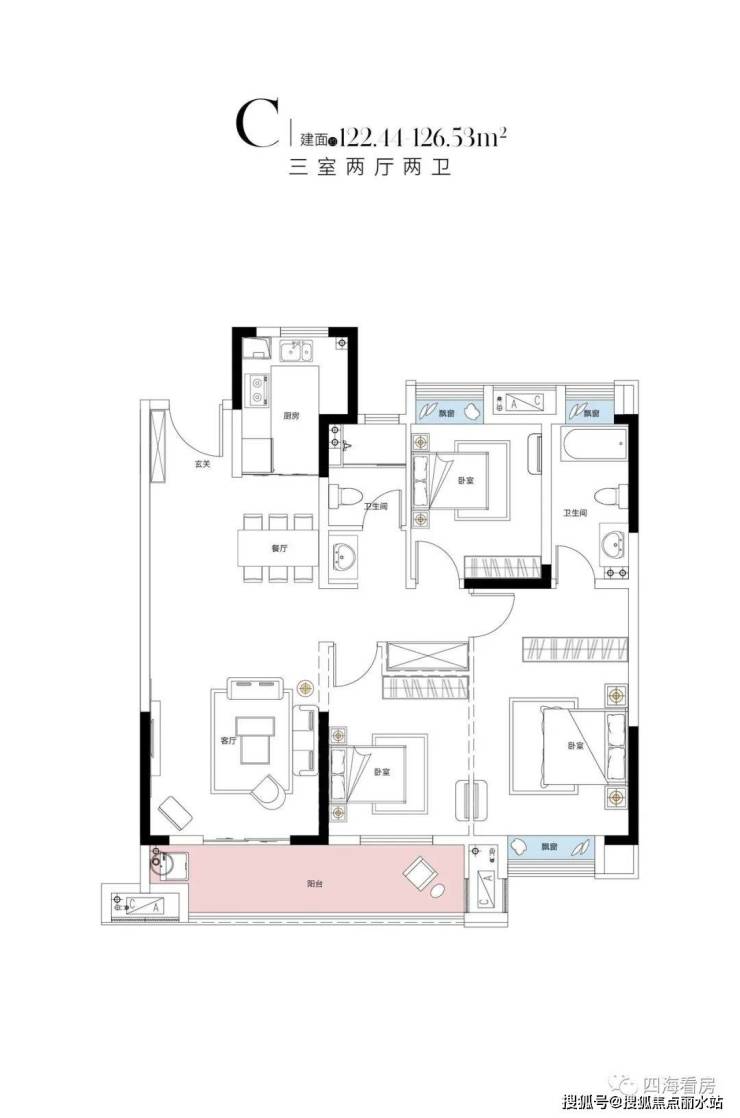 沐景之境:约11米南向三开间,约6.8米阔绰阳台,广袤视界尽揽天地大美。