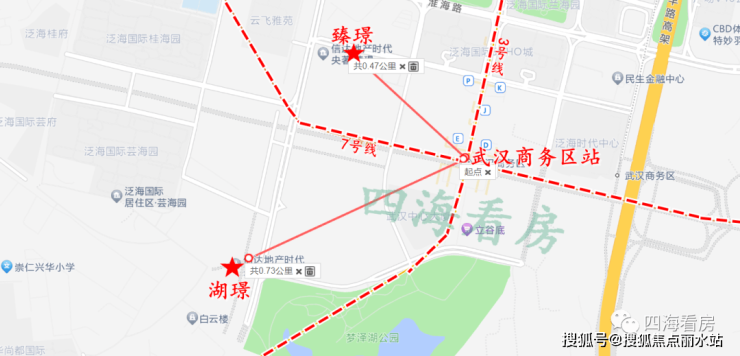 3、双地铁交汇,下楼即公园,高层可看湖!信达时代央著·湖璟距离地铁3号线和7号线换乘站武汉商务区站直线距离仅600米,且小区东侧隔条马路就是梦泽湖公园,高楼层可以看湖景,这样的交通景观资源配置在市中心是非常稀缺的!