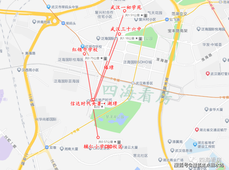 地铁与公交:信达时代央著湖璟与臻璟最近的地铁站都是7号线和3号线换乘站武汉商务区站,湖璟距离地铁站约700米,臻璟约500米。7号线约1站路可在双墩站与在建的12号线换乘。