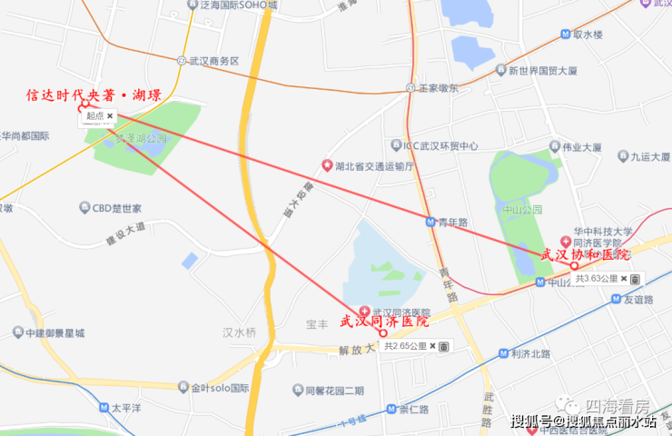 医疗上,项目距离武汉同济医院直线距离约2.6公里,距离协和医院直线距离约3.6公里,都非常近。