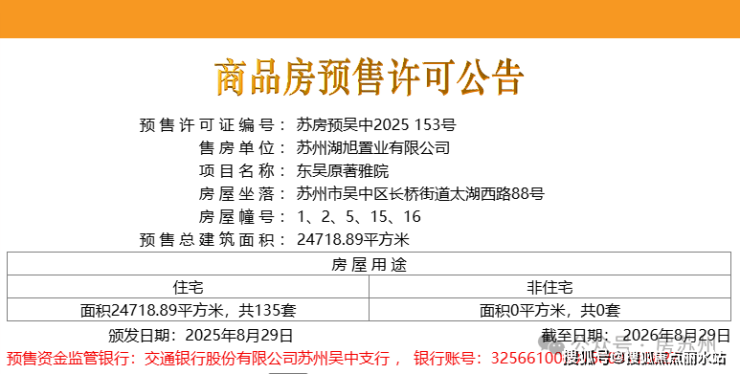 2025年8月29日,项目第二批房源领证,共135套,位于1、2、5、15、16号楼,货值约8.32亿。