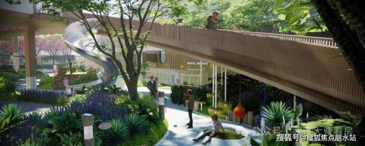 以“海绵城市”与能源自洽为基底,五重主题植物园缝合进来未来社区里,让建筑与自然和谐共生,触摸真正的“绿触率”。