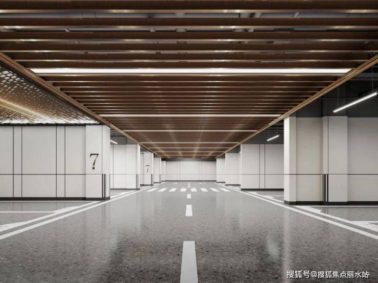 这还不够,若你足够仔细会发现,地库车道用上了水磨石地坪,这比普通环氧耐磨性高3倍。甚至将所有地库吊顶都加上了金属格栅,既遮蔽了管线系统,又成为光影艺术的载体。当然,成本也很高。