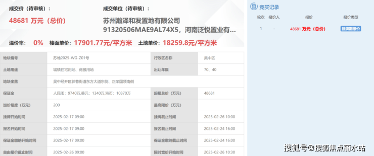 项目所在的苏地2025-WG-Z13号地块于今年7月23日成功竞得,成交楼面价约14400元/㎡。