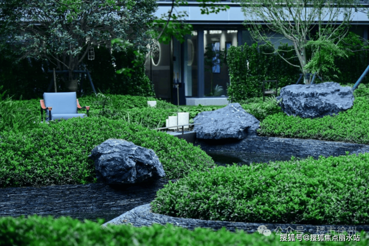 再说“内“:这才是重头戏!璟樾府特邀山水比德大师团队,以宋代古画《青山绿水图》为灵感,打造超过一万方的内部园林——不是常规的社区绿化,而是一座可游、可赏、可感的自然艺术馆。雾森系统、珍稀树种、艺术水系与奢石铺装融合,再现“青山绿水”的诗意美学,让回家变成一场穿越风景的旅行。