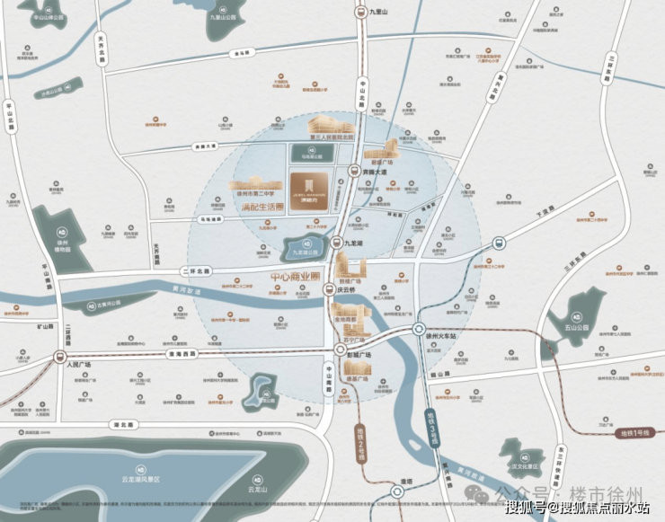璟樾府深得此道,择址于徐州最为矜贵的鼓楼政务核心圈。其范围南至二环北路,北抵金马路,东临煤港路,西靠天齐路,占据着无可争议的城市中心地位。