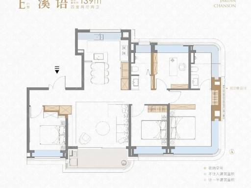 建面约 139㎡四房两厅两卫:高端改善户型,双套房设计,主卧与老人房均为独立套房,配备独立卫生间,兼顾家人生活私密与便捷。客厅面宽超 6 米,连接超大观景阳台,可俯瞰社区宋式园林景观,餐厅独立分区,可容纳 6-8 人同时用餐,适合家庭聚会与宾客宴请。全屋空间开阔,尺度感十足,装修细节精益求精,总价约 841 万起,匹配城市精英改善需求。