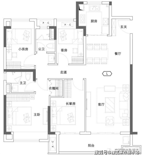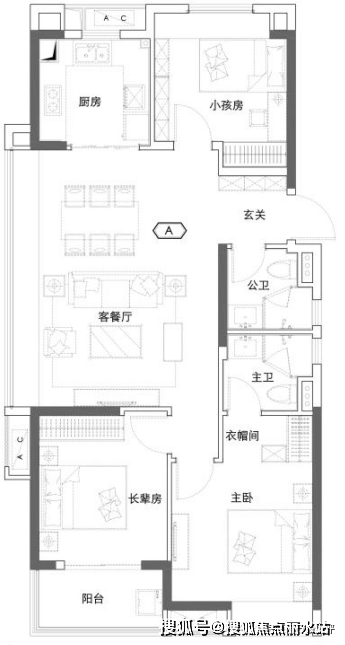 长辈房与客厅之间无剪力墙,可以打通作为超大横厅使用