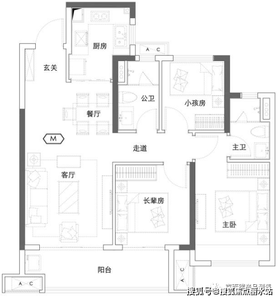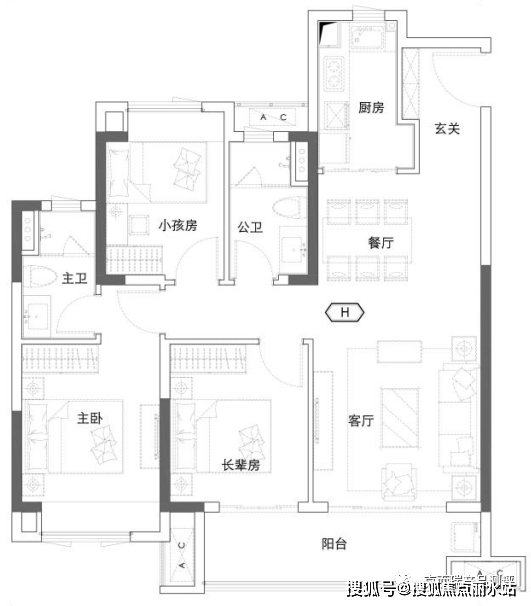 三开间朝南,采光好。双开间超宽阳台,尽享景观视野