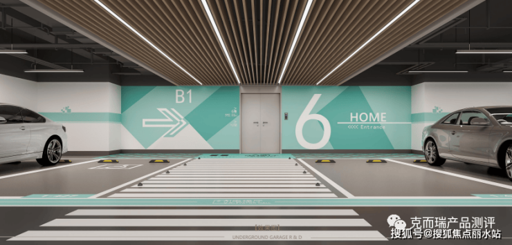 利用装饰的特殊色调及指示纹理,可以起到引导人们行为的作用,视觉上也突出了车库大堂入口的仪式感。