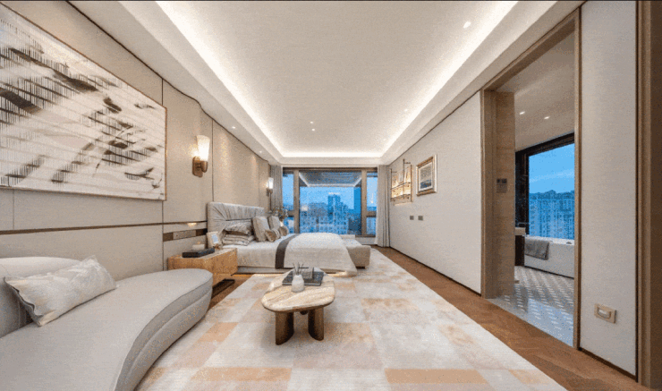 如约252㎡上叠的行政主卧,约6.8米开间搭配大面积落地窗,尺度与视野甚至超越了多数大平层。