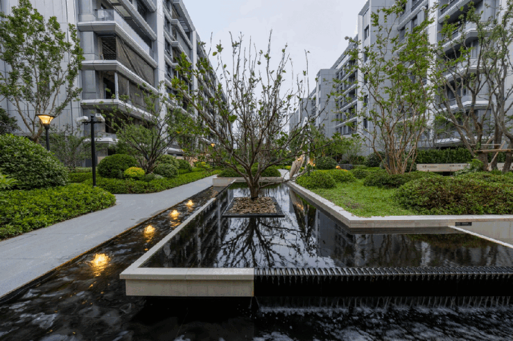 法式干挂的石材立面、别墅区超低容积率,让每一栋楼都像是从太湖山水中天然生长出来的一般。