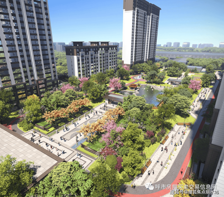 本项目以“三重山水三重院”的围合式园林设计,呈现出3万㎡的中心景观带,实现了65%的园林绿化和百米的楼间距。