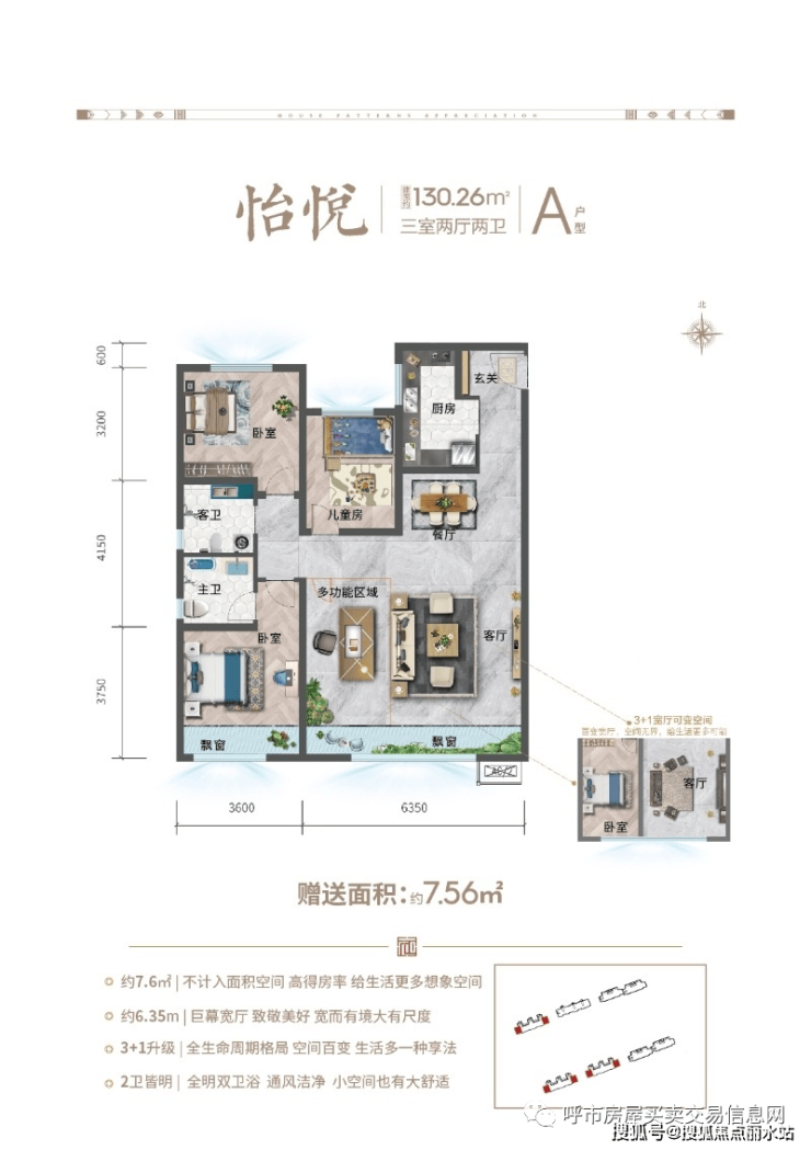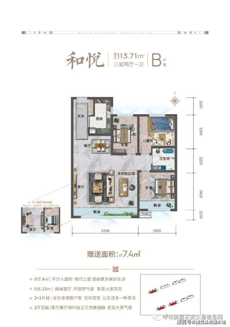 项目户型设计优,主力户型113㎡、130㎡做到了6.15~6.35超大宽厅设计。
