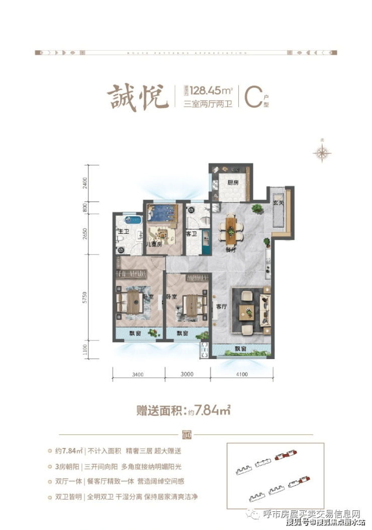 128㎡三室两厅两卫(3#、6#)