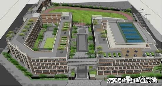 公共空间:食堂、室内体育馆、屋面运动场、室外球场为共同使用空间,其中室外运动场为300米跑道