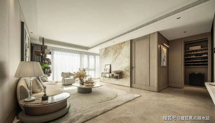 以传统“漏景与借景”方式,引天光入境,于若隐若现中,空间层次悄然铺展,令归家心境从容过渡,沉浸于东方美学的静谧氛围。