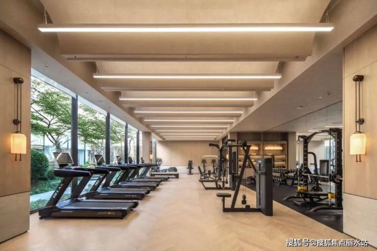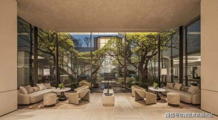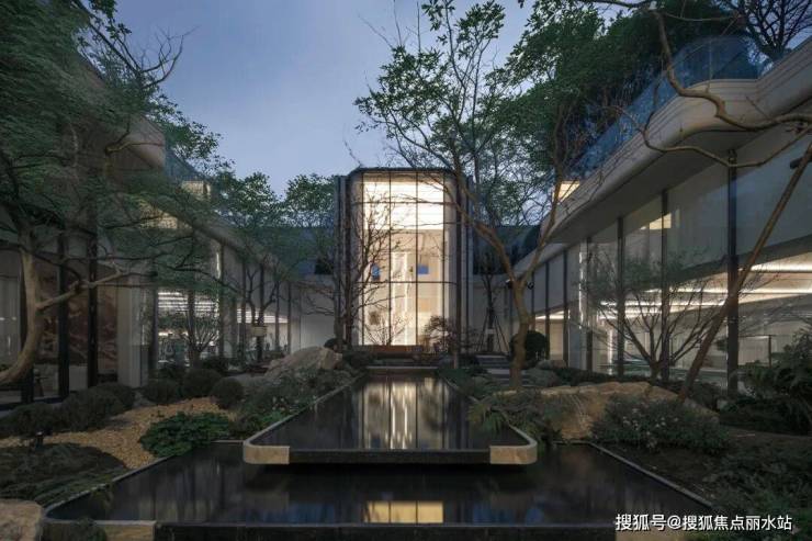 在会客空间中,你可以看见庭院里的婆娑树影;在健身房里,流淌的溪水让运动不再枯燥;无边泳池的水面,不仅倒映着造型优美的天花板,还有下沉式庭院里的高低起伏的台阶与各色花树——这一切,共同构成了超越功能的场景奢侈。