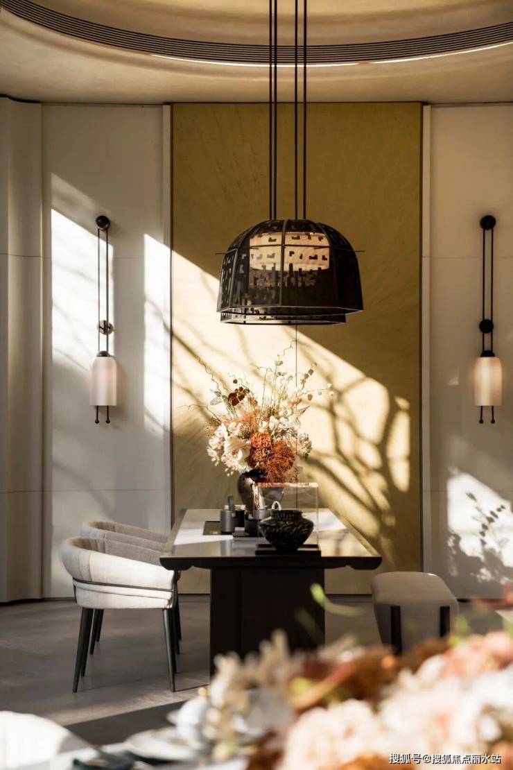 这仅仅是开始。作为第一接待会客厅,近300㎡的空间如同一座奢石博物馆,构筑了项目的整体基调;除此之外,还有浮光水院——整个庭院的铺装均由奢石打造,色泽与纹理随光线流转。