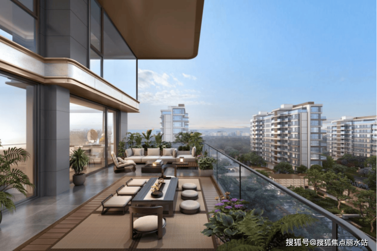 落在该项目的具体设计中,就是每一个户型都能拥有一个近6米挑高露台。