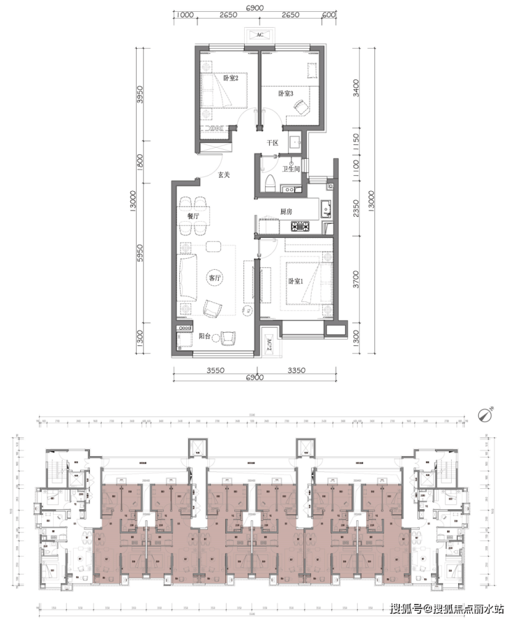 【建面约103㎡三室两厅一卫】