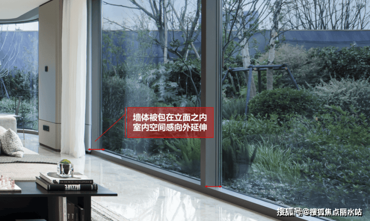 但在明湖之心,为了外立面的一体化,实际上是将落地窗的玻璃面与外墙做成齐平,相较传统「中间位」的做法,让室内空间的「视觉感受」向外延伸出了约10CM左右。
