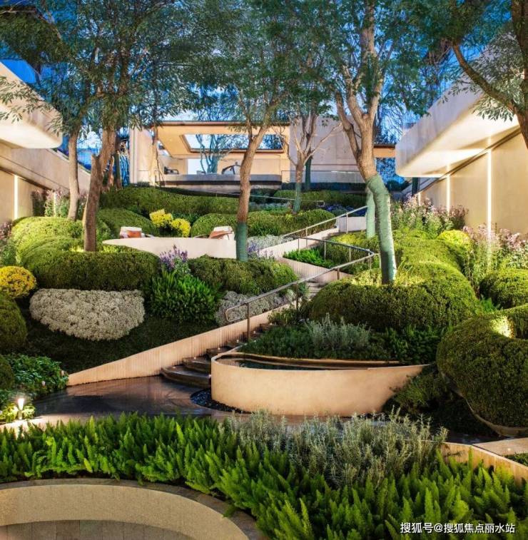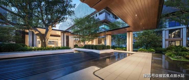 在约6米高差、40米纵深的峡谷坡地庭院里,蜿蜒跌水、山感栾树,刻画着雅鲁藏布峡谷的自然肌理,搭配超500平米水景系统,把归家之路变成一场沉浸式的自然疗愈。