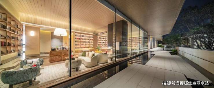 穿过庭院,推门进入「序·Gallery」会所,恒温泳池的池水正缓缓循环,水面倒映着天花板的光幕。