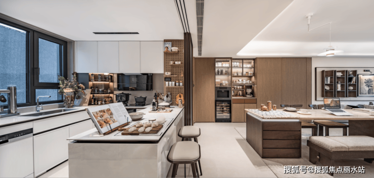 G型厨房更是“社交达人”的福音。打开推拉门,无论是包饺子还是做披萨,这种全家参与的烹饪时刻,还是餐后小酌,餐厨秒变水吧畅聊区,都能轻松应对。