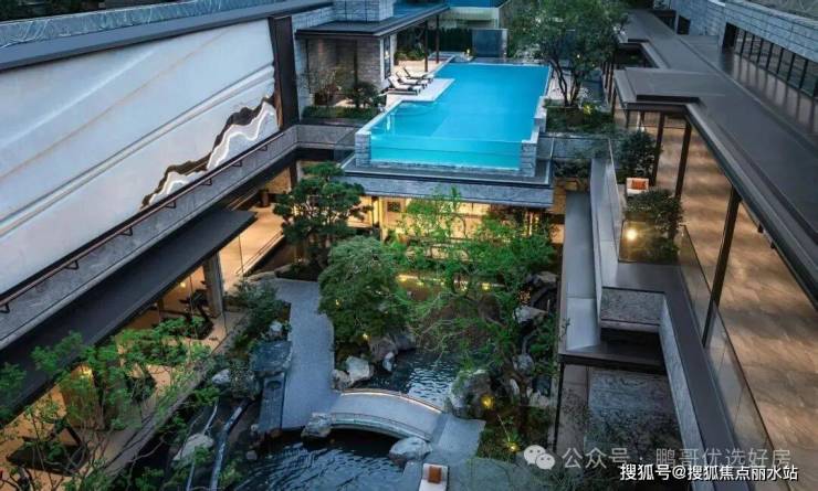 悬挑泳池尤为让人瞩目,创新设计江南岸首个悬挑式无边际泳池,搭配流水幕帘与青玉雕刻的“聚宝盆”,水流潺潺间,不仅度假氛围浓郁,蕴含“吉祥美好”的寓意。