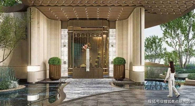 再看景观,项目打造了超2100平方米的珠宝主题景观示范区,还设计了“景观架空层+下沉庭院+中央车马厅”,三位一体的立体景观体系。