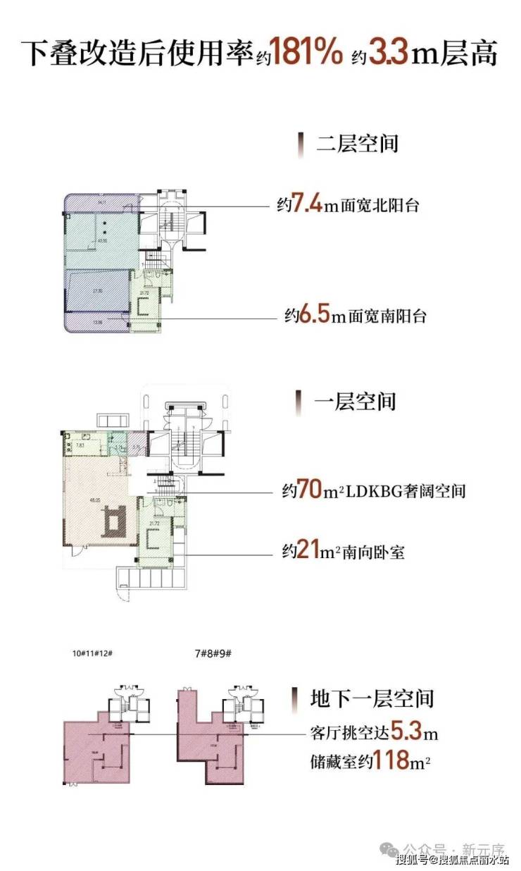 同时,下叠装修改造后综合使用率可达约181%,其中地下生活室,后期可打造为酒窖、收藏室或私人工作室;阳台空间,可承载家庭多元志趣,方寸之间转化为可生长的生活容器。