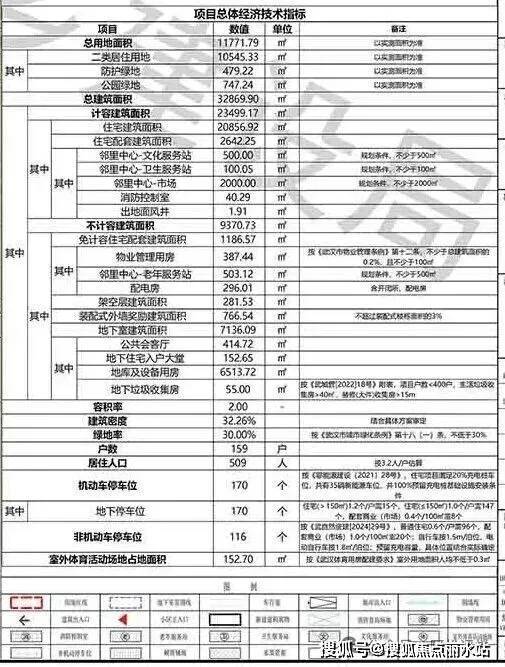项目总用地面积约1.18万方,总建筑面积约3.29万方,计容建筑面积约2.35万方,住宅建筑面积约2.09万方,容积率2.0,户数159户,机动车停车位170个,车位配比1∶1.07。