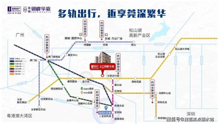项目距离规划R3线和深11号交汇的长安步行街站仅1公里,沿深11线3站直达前海合作区,沿R2线3站直达滨海湾新区。穗莞深城际接驳深圳、广州一线国际大都市,3站抵达前海合作区,40分钟直达广州。