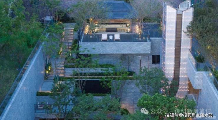 仅为高层产品的1/3土地承载量,建筑谦退于自然,每户私享庭院,留白出“观天、观地、观物、观己” 的东方意境。