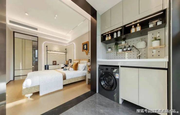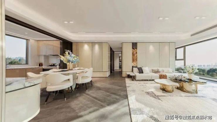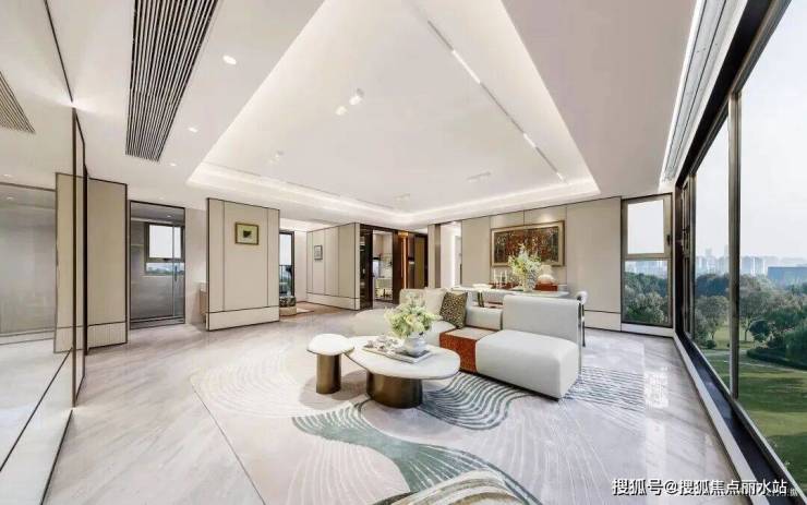·体验感平权:全屋精细化收纳系统,每个户型收纳占比均超12%。精装细节上追求极致的整体性,餐客厅与阳台采用超大尺寸瓷砖通铺,吊顶亦一气呵成延伸至阳台,甚至连背景墙的岩板都将阳台空间整体纳入。