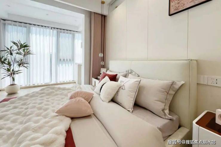 南向双卧室满足核心居住需求,主卧套房设计,配备独立卫浴与景观飘窗,米白色氛围与浅木色柜体营造温馨质感;次卧与阳台相连,全封闭式的设计让空间更为阔绰,满足实用与观景的双重需求。