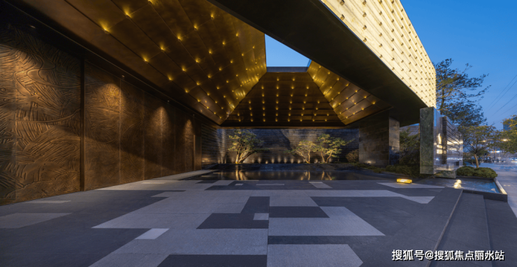 首先,以“藏”纳万象,以《西园雅集图》为空间蓝本,入口处白玉门廊镶嵌486片温润玉石,恰似《桃花源记》中“山有小口,仿佛若有光”的当代注解。设计师巧妙借用地势10米高差,让建筑如璞玉漂浮于山林之上,又以退让之姿完成现代建筑与自然的对话。