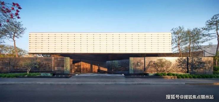 凤栖逸庐的国际东方合院,其建筑遵循经典的“屋檐、屋身、台基”三段式构图原则,立面层间质朴的石材与精致的柱、栏、屏、榫等建筑构造形成对比,凸显出独特的雅致格调。