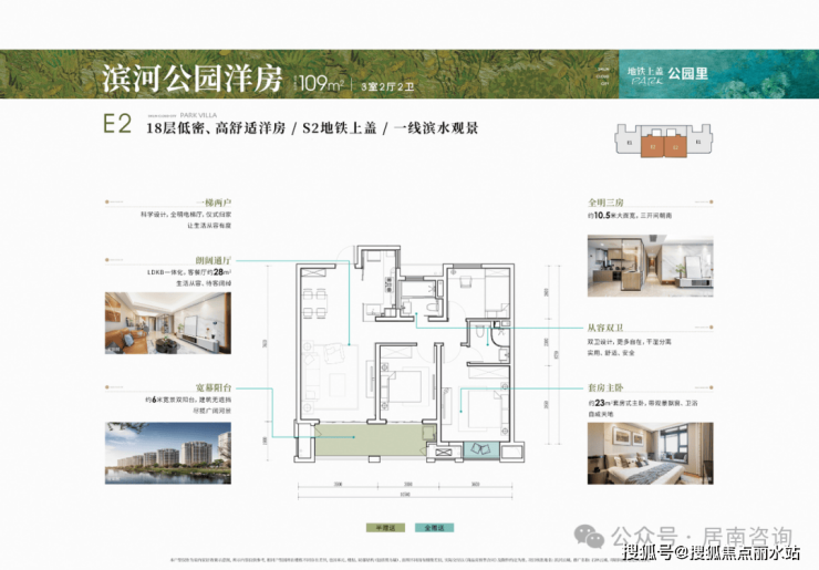 滨水公园洋房(18层)、小高层洋房(18层)、雨花院子(6层)、花园院落商业、别墅
