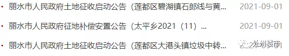 9月1日,丽水市人民政府发布2则土地征收启动公告。以及1则征地补偿安置公告。