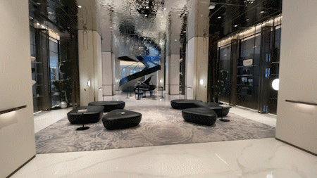 320㎡户型 一层一户 :①双电梯、双动线入户设计让空间更灵活,业主和家政人员动线不重叠,兼顾安全性和隐私感;②大开间朝南,户型采光通透,L型270°观景阳台,全方位享受江景景观,视野极佳;③LDK一体化设计,生活动线流畅,方便家庭成员情感交互;④四卧室全套房设计,其中双主卧套房,尊奢感极佳。